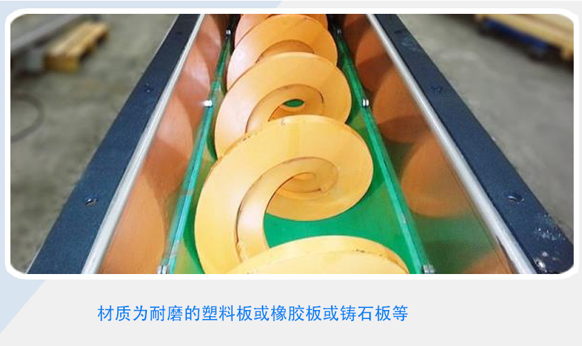 無軸螺旋輸送機可輸送傳統有軸螺旋輸送機和皮帶輸送機不能或不易輸送的物料,如顆粒狀和粉狀物料、濕的和糊狀物料、半流體和粘性物料、易纏繞和易堵塞物料、有特殊衛生要求的物料。無軸螺旋輸送機的性能特點是:無軸螺旋輸送機與傳統有軸螺旋輸送機相比,由于采用了無中心軸設計,利用具有一定柔性的整體鋼制螺旋推送物料,因而具有以上突出優點,性能好。與有軸螺旋輸送機相比,重量和成本都會減少不少。